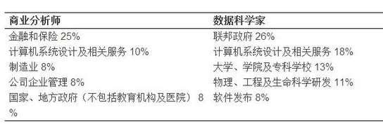 这两张表大致描述了BA, DS毕业生的主要去向,有差异,也有重叠。