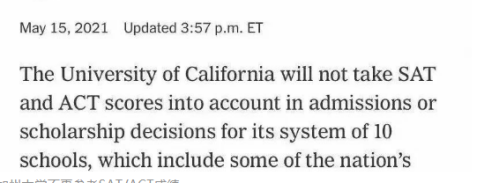 近期,加州大学宣布不再在招生与奖学金评比时参考SAT和ACT成绩。这说明,美国受欢迎的公立院校系统之一的加州大学迈入了不参考标化考试成绩的时代。