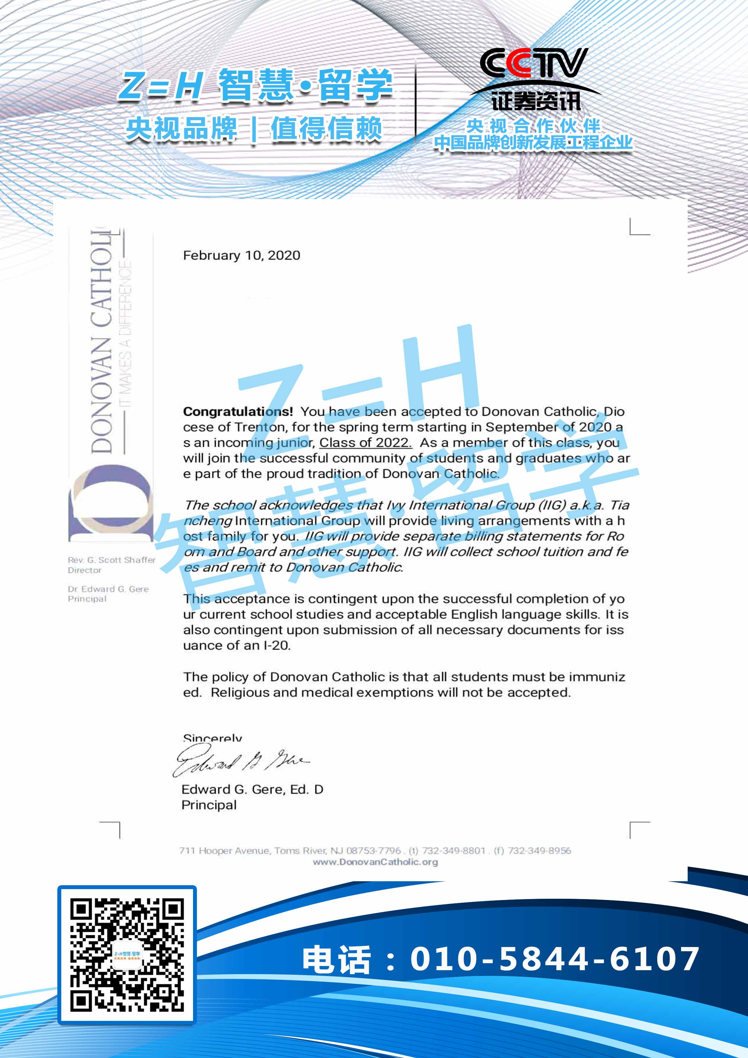 高端美国留学中介智慧留学—美国留学录取多诺万天主教高中