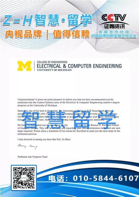 录取结果:美国密西根大学安娜堡分校,电气和计算机工程硕士控制系统方向!