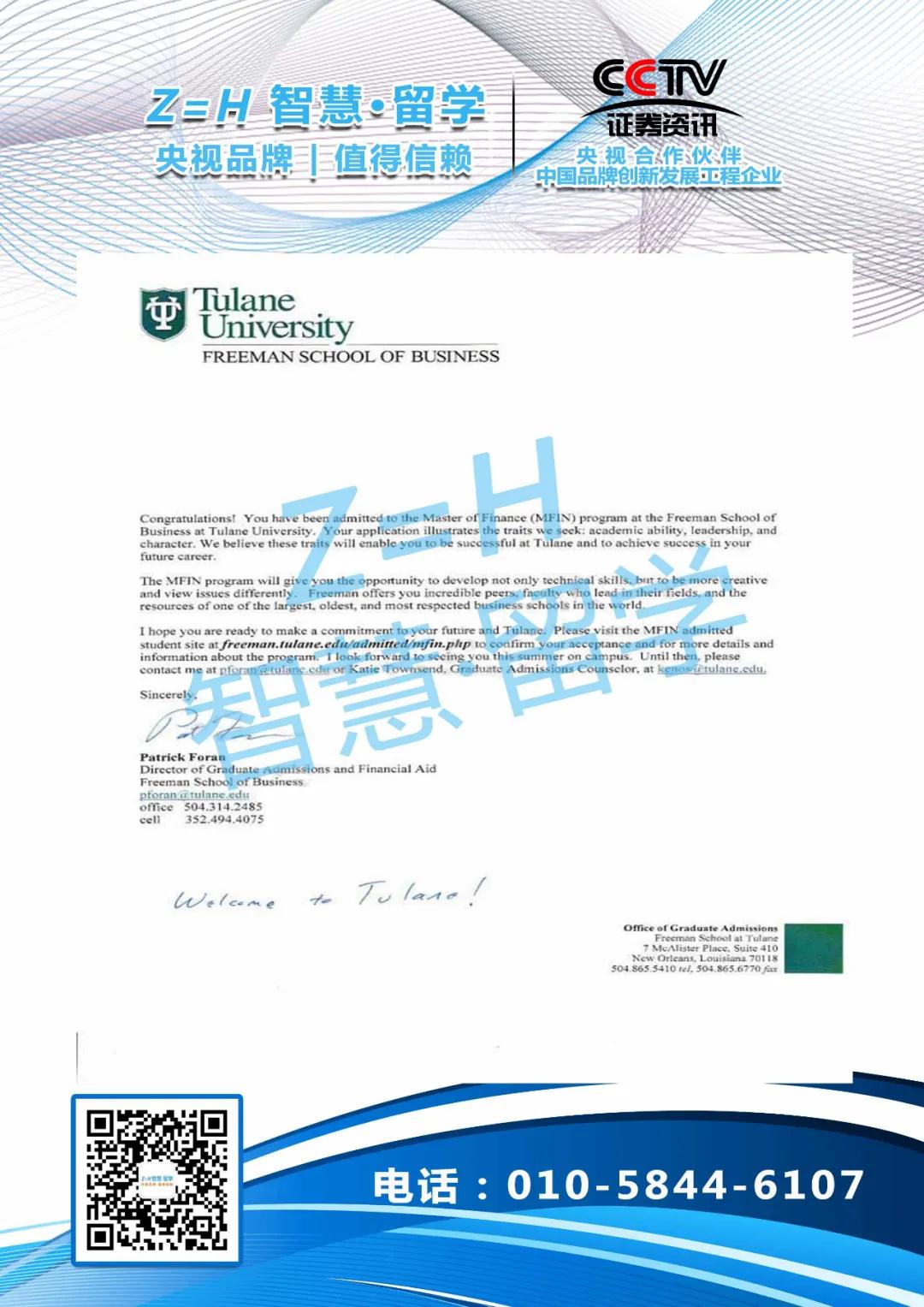 录取结果:美国排名第 40 杜兰大学金融硕士