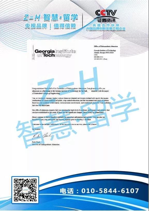录取结果:录取美国大学排名第 29 佐治亚理工学院本科入学!