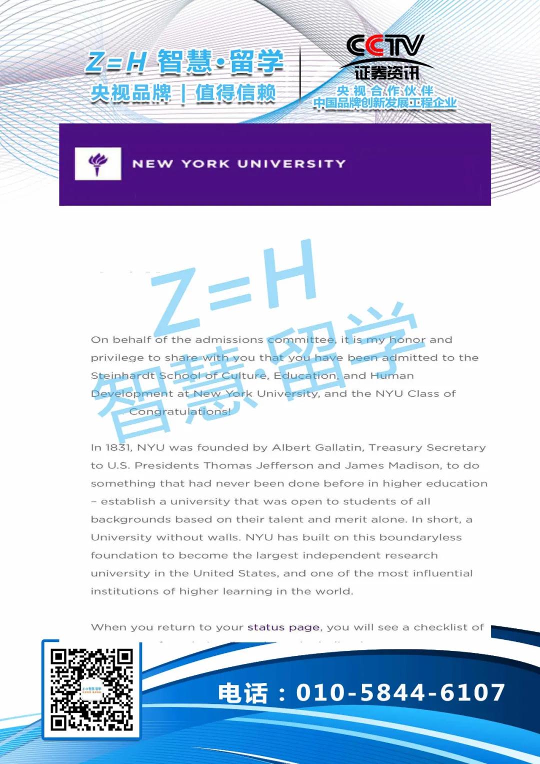 录取结果:录取美国排名第28的纽约大学教育学硕士!