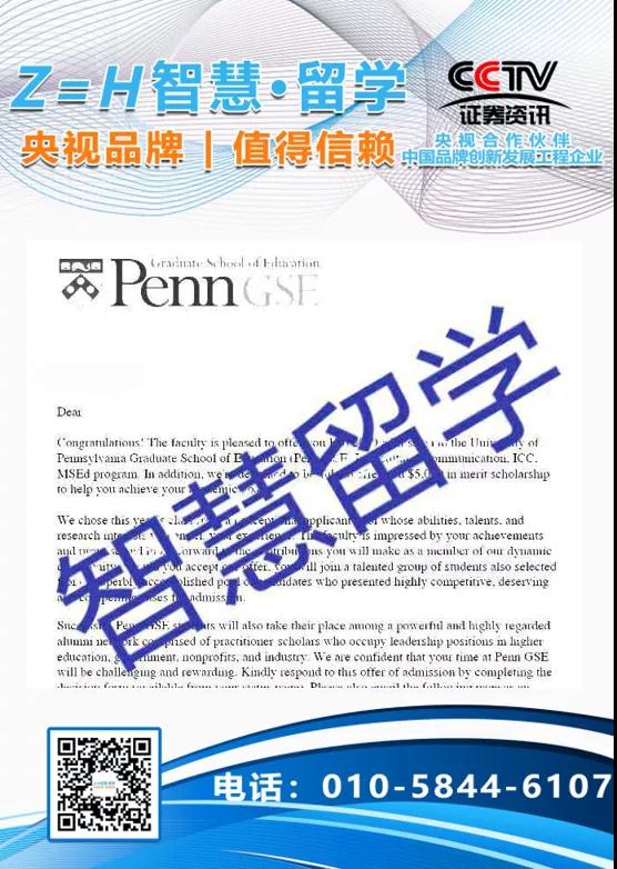 录取学校:录取美国排名第6的“常青藤名校”宾夕法尼亚大学教育学硕士!