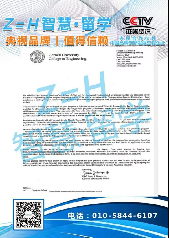 录取结果:世界排名第14的“常青藤名校”康奈尔大学土木和环境工程硕士交通系统工程方向