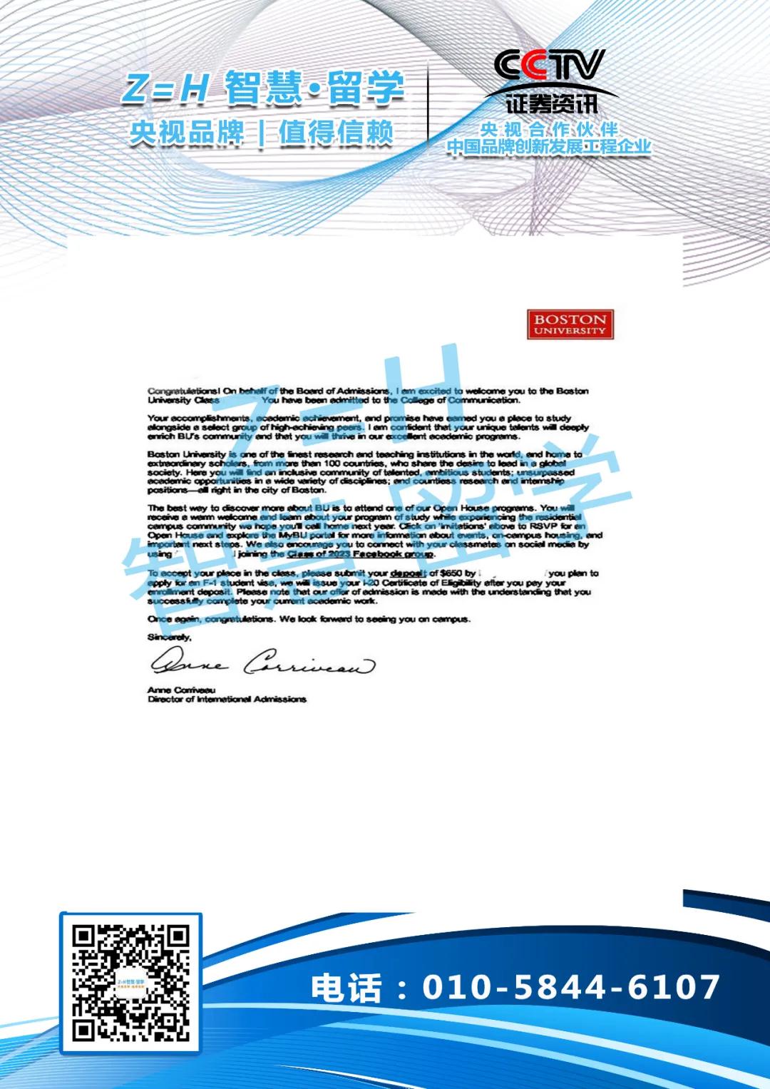 录取结果:录取美国排名第39的波士顿大学本科新生入学!美国国家1级大学、美国第3大私立大学!