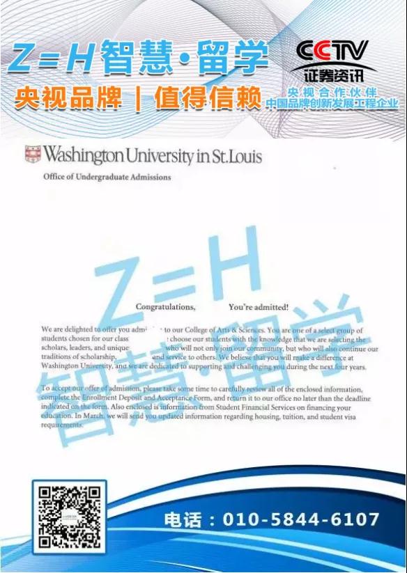 录取结果:录取世界排名第31的圣路易斯华盛顿大学本科入学!