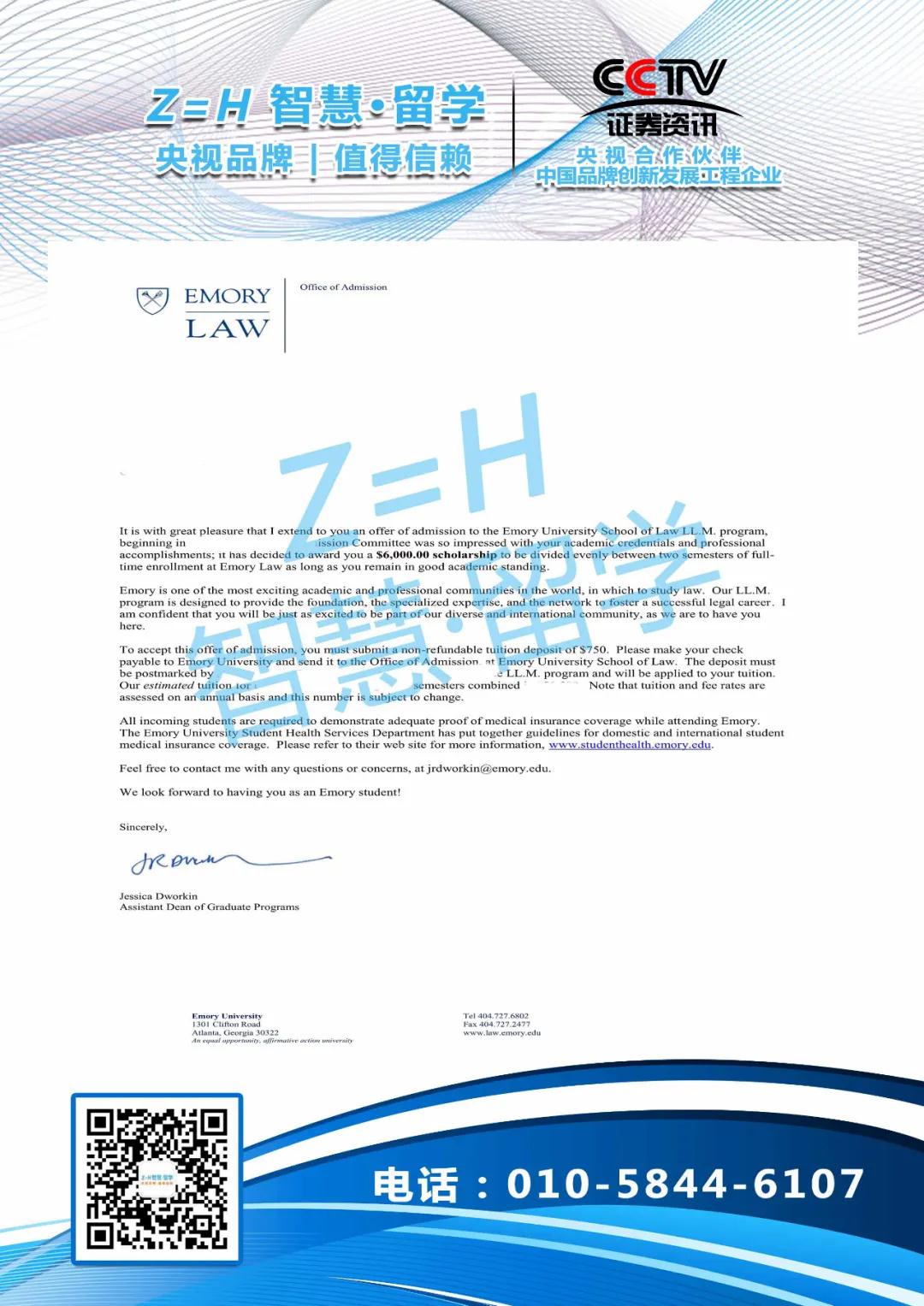 录取学校:美国埃默里大学 录取专业:法律硕士LLM