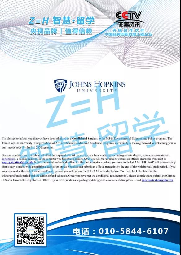 录取院校:美国排名第10的约翰霍普金斯大学,环境硕士