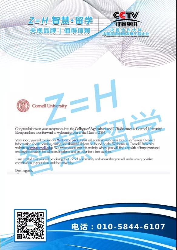 录取院校:美国“常青藤名校”康奈尔大学本科入学!