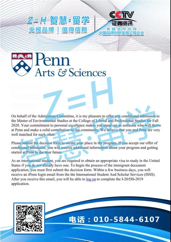 录取院校:美国“常青藤名校”宾夕法尼亚大学,环境硕士