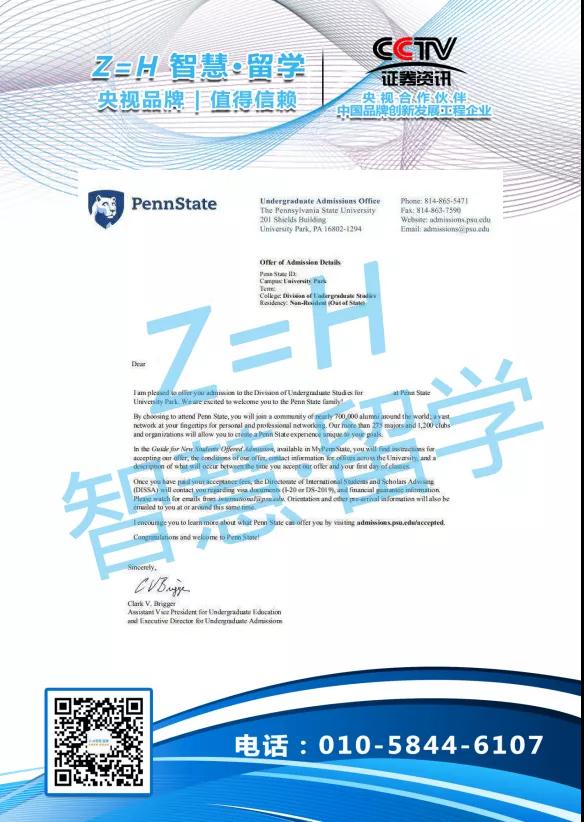 高端美国留学中介智慧留学—录取美国公立大学前10的宾州州立大学本科入学