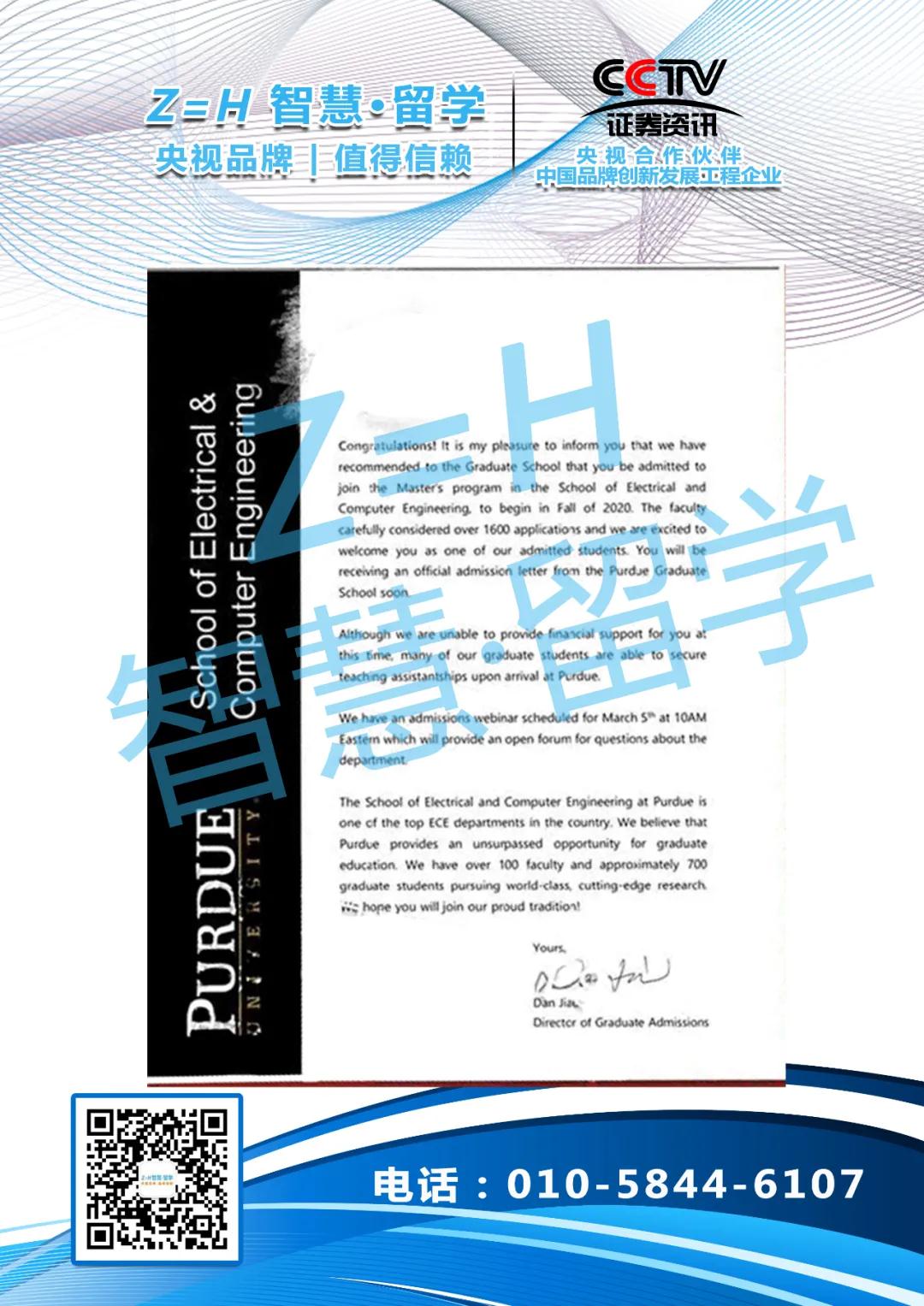 高端美国留学中介智慧留学—录取美国工科前10名校普渡大学ECE硕士
