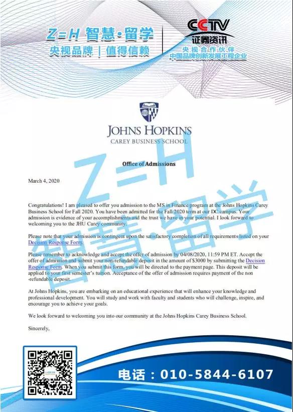 录取院校:美国约翰霍普金斯大学