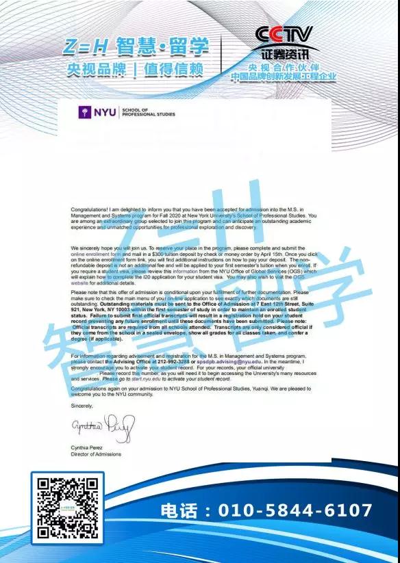 录取专业:MS in Management and Systems-concentration: Enterprise Risk Management