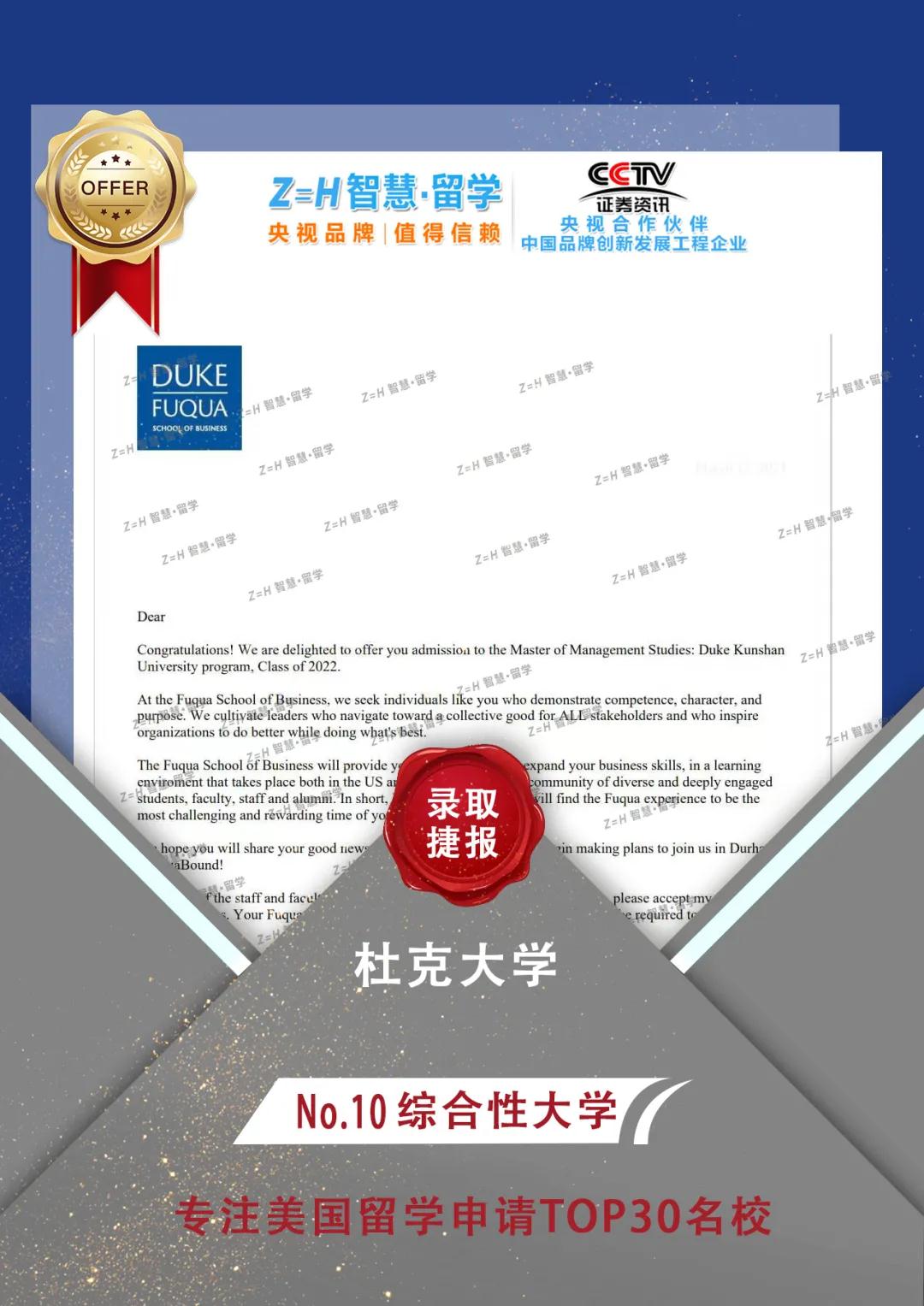 X同学从高中开始就在美国读书,本科在美国南加州大学读书,GPA3.84,GRE332,在高端美国留学中介—智慧留学顾问老师的全方位、系统化的帮助之下,获得了美国排名第10名杜克大学管理学硕士的Offer,作为X同学的指导老师,我今天和大家分享一下X同学申请背后的故事。