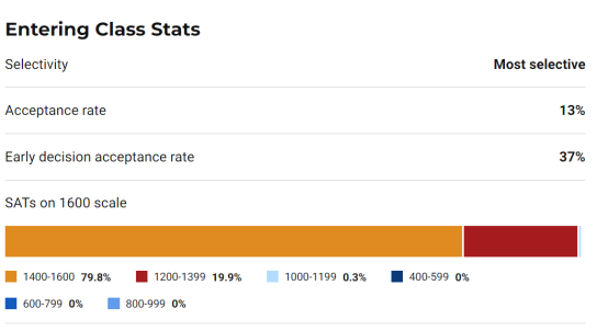 威廉姆斯学院录取要求非常严格,目前录取率是13%,不过ED录取率可以达到37%。往年录取的学生SAT成绩在1400-1600达到79.8%。